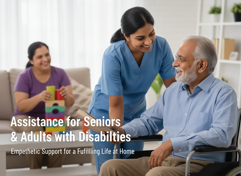 We provide comprehensive assistance for seniors and adults with disabilities, including mobility support, hygiene assistance, medication management, and daily wellness checks. We also offer all catheter insertion or replacement following strict infection-prevention protocols, with prices starting from ₹300.